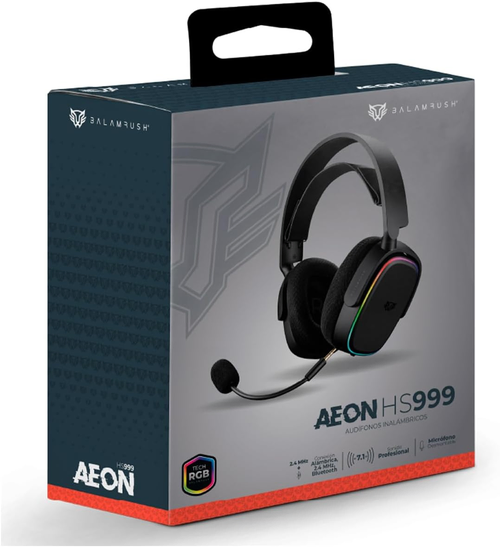 AUDIFONOS / BALAM RUSH / DIADEMA GAMER / AEON HS999 / INALAMBRICO / MICROFONO FLEXIBLE / USB RGB / NEGRO / BR-936934