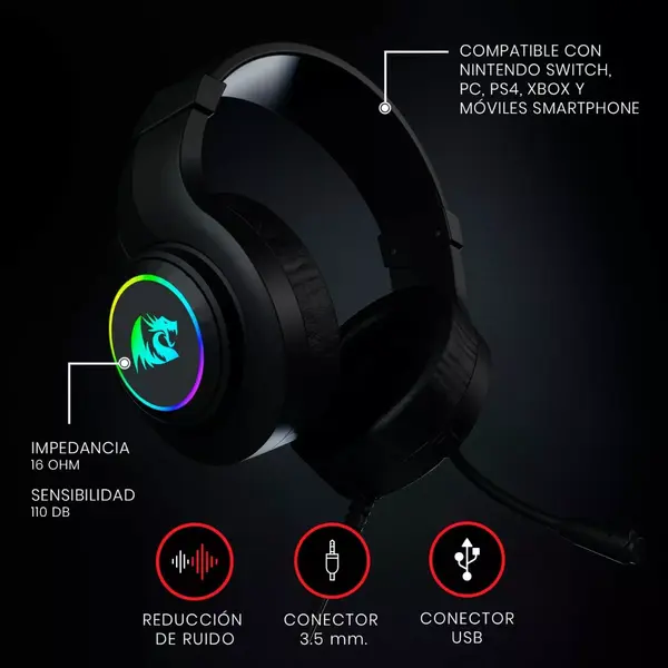 Los Audífonos Redragon Hylas H260RGB no solo se destacan por su comodidad y sonido, sino también por su estilo. Incorporan retroiluminación RGB personalizable en los auriculares, lo que agrega un toque visual atractivo que puede adaptarse a tu setup de gaming. Esta iluminación permite crear una atmósfera única mientras juegas, añadiendo un componente estético que completa la experiencia de juego.