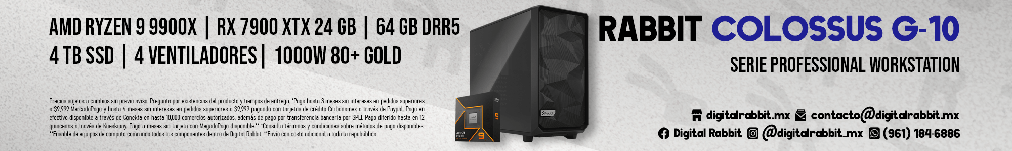 La Computadora Colossus-G10 es una estación de trabajo de gama alta creada para satisfacer las demandas más exigentes de profesionales y creadores de contenido. Equipado con un potente procesador AMD Ryzen 9 9900X, este equipo es ideal para trabajos complejos que requieren gran capacidad de procesamiento. Con 8 núcleos y 16 hilos, el Ryzen 9 9900X alcanza velocidades de hasta 5.4 GHz, lo que lo convierte en la opción perfecta para manejar aplicaciones que requieren una enorme capacidad de cálculo, como la edición de video en 4K y 8K, simulaciones físicas avanzadas, modelado 3D y más. Este procesador ofrece un rendimiento estable y de alta velocidad en tareas como renderizado, análisis de datos complejos y procesamiento en tiempo real, que se traduce en una experiencia de trabajo fluida y eficiente.