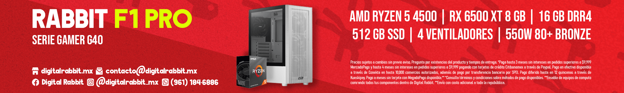 COMPUTADORA RABBIT F1 PRO / AMD RYZEN 5 4500 / RX 6500 XT 8 GB / 16 GB RAM / 512 GB SSD / PSU 550W 80+ BRONZE