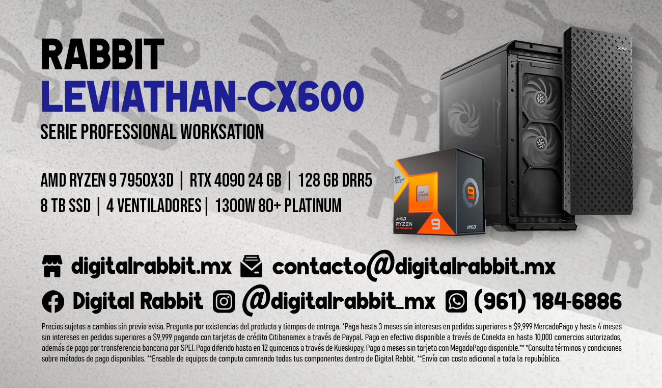 COMPUTADORA RABBIT LEVIATHAN-CX600 / AMD RYZEN 9 7950X3D / RTX 4090 24 GB / 128 GB RAM / 8 TB SSD / PSU 1300W 80+ PLATINUM