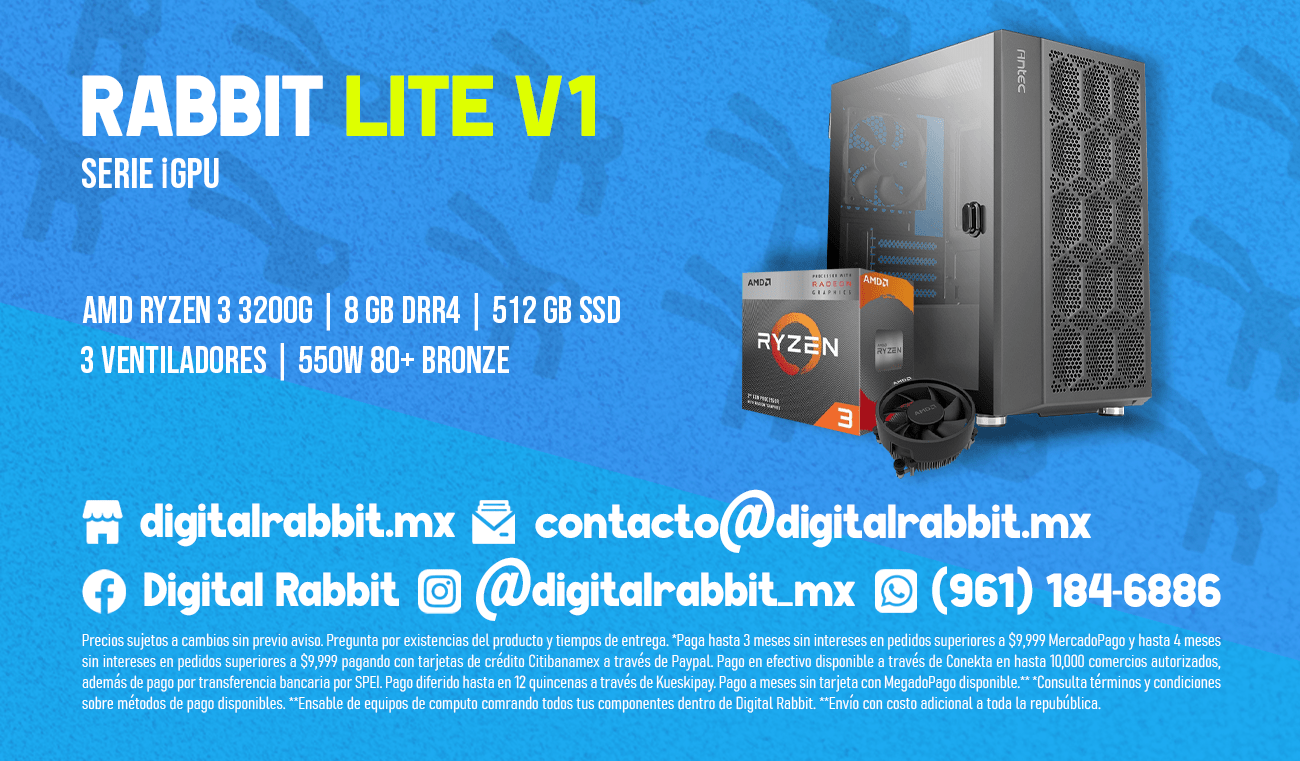 COMPUTADORA RABBIT LITE V1 / AMD RYZEN 3 3200G / 16GB RAM / 512GB SSD / PSU 550W 80+ BRONZE