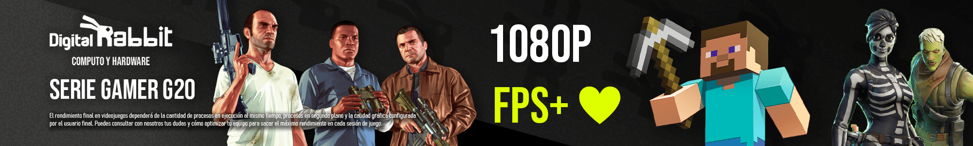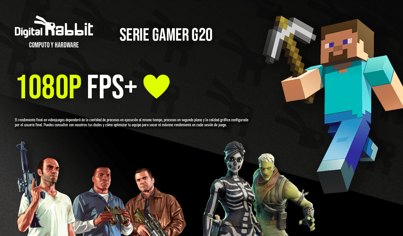 En cuanto al rendimiento en juegos, la RABBIT ONE A1 se desempeña excelentemente con títulos populares en calidad gráfica alta a 1080p. Juegos como Fortnite, Apex Legends, League of Legends, GTA V y otros se ejecutan a tasas de cuadros estables, lo que garantiza una experiencia fluida y sin interrupciones. La RX 580 8GB es capaz de mantener estos juegos a un nivel visual impresionante, permitiendo que disfrutes de todos los detalles y efectos visuales sin perder la fluidez.