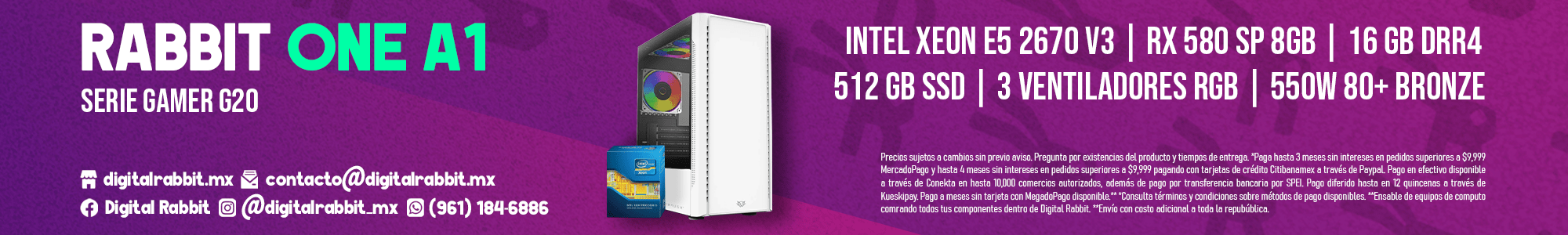 Esta computadora también es perfecta para usuarios que buscan un equipo con un diseño atractivo y un alto rendimiento para tareas de productividad. Ya sea que estés editando videos, trabajando en proyectos gráficos o realizando trabajos de oficina, la RABBIT ONE A1 tiene la potencia para hacer todo esto y más, sin comprometer el rendimiento ni el estilo. Con esta PC, tendrás todo lo necesario para trabajar y jugar de manera eficiente, a un precio competitivo que hace de la RABBIT ONE A1 una opción atractiva y accesible.