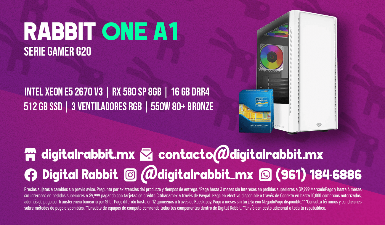 Esta computadora también es perfecta para usuarios que buscan un equipo con un diseño atractivo y un alto rendimiento para tareas de productividad. Ya sea que estés editando videos, trabajando en proyectos gráficos o realizando trabajos de oficina, la RABBIT ONE A1 tiene la potencia para hacer todo esto y más, sin comprometer el rendimiento ni el estilo. Con esta PC, tendrás todo lo necesario para trabajar y jugar de manera eficiente, a un precio competitivo que hace de la RABBIT ONE A1 una opción atractiva y accesible.