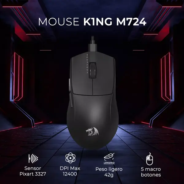 El Mouse Redragon King M724 está diseñado para ofrecer un control total y precisión en cada movimiento. Con un sensor de alta sensibilidad, este mouse es ideal para juegos competitivos. Cuenta con botones programables y retroiluminación RGB que se pueden personalizar según las preferencias del usuario, adaptándose a diferentes estilos de juego. Además, su diseño ergonómico se adapta cómodamente a la mano, permitiendo largas sesiones de juego sin incomodidad, lo que lo convierte en una herramienta confiable para cualquier gamer.