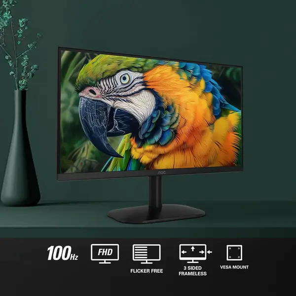 El MONITOR LED AOC 22B2HM2 también cuenta con soporte VESA 100×100 mm para montaje en pared o brazo articulado, optimizando el espacio de trabajo. Su construcción ergonómica y eficiencia energética lo convierten en una opción ideal para usuarios que buscan rendimiento, comodidad y durabilidad en un monitor accesible y funcional.