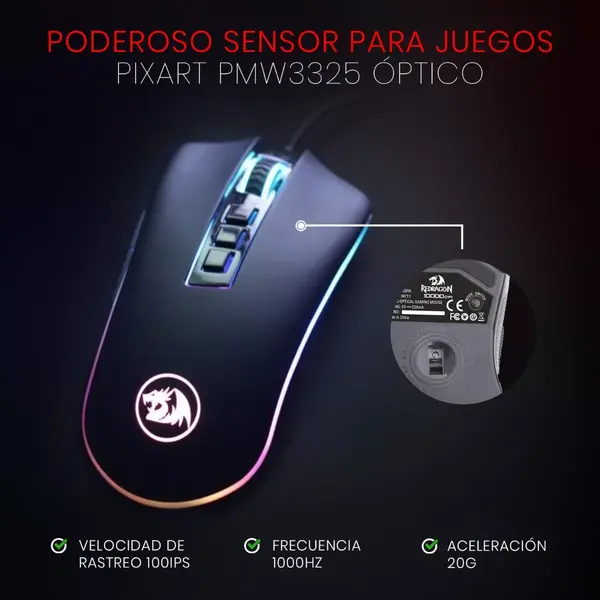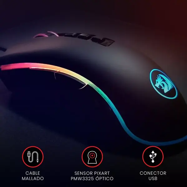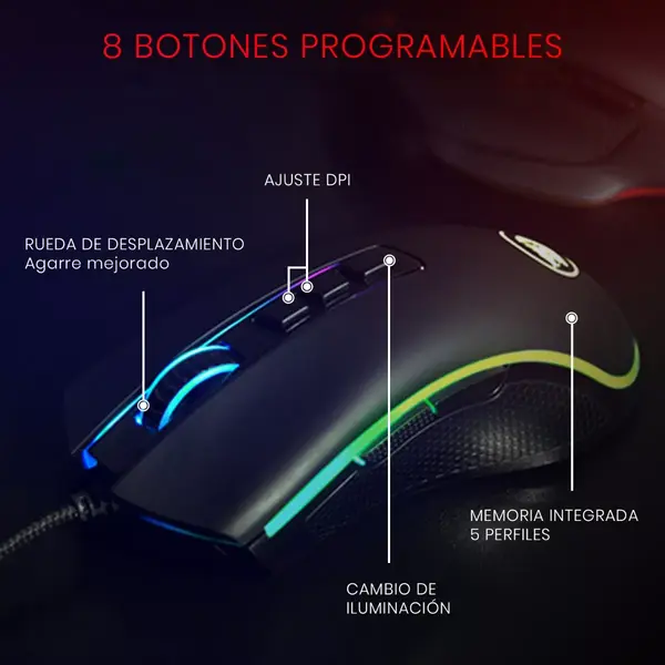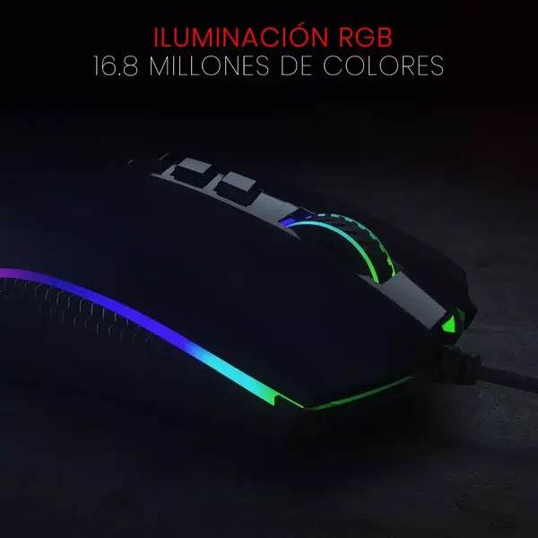 Su diseño ergonómico se adapta cómodamente a la mano, permitiéndote jugar durante largas horas sin incomodidad. El color negro del mouse, combinado con su retroiluminación RGB personalizable, no solo proporciona un aspecto elegante y moderno, sino que te permite personalizar los colores y efectos de luz a tu gusto, adaptándose a tu estilo y creando una atmósfera única en tu setup. Es perfecto para quienes buscan un mouse que combine rendimiento y estilo, sin comprometer la funcionalidad.