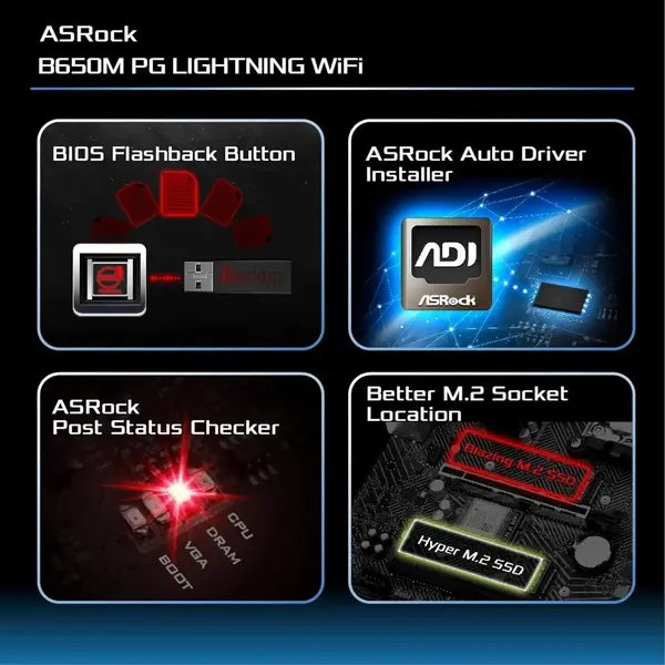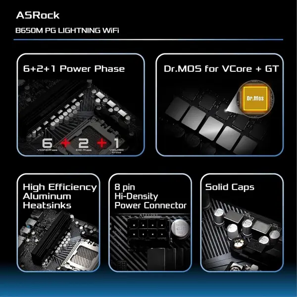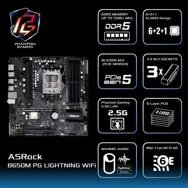 Con su combinación de rendimiento, conectividad y fiabilidad, la ASRock B650M Phantom Gaming Lightning WiFi es una opción ideal para PCs de alto rendimiento y gaming exigente.