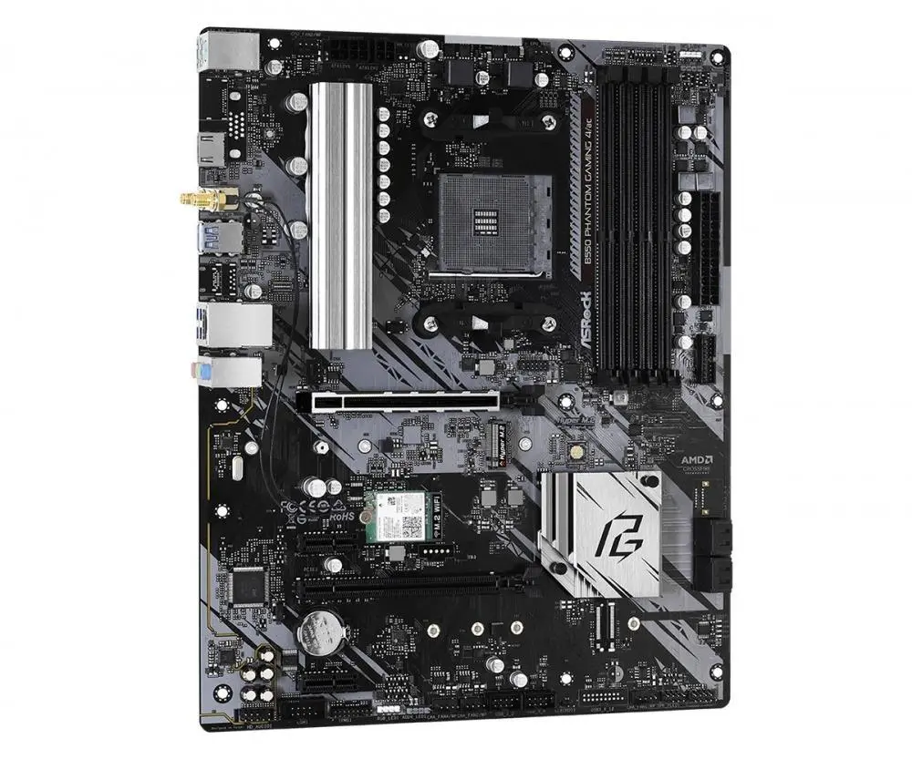 La motherboard ASRock ATX B550 Phantom Gaming 4/AC es una excelente opción para entusiastas y gamers que buscan alto rendimiento y conectividad avanzada. Compatible con procesadores AMD Ryzen de las series 3000, 3000 G, 4000 G, 5000 y 5000 G (excepto Athlon), esta placa ofrece estabilidad y potencia gracias a su diseño de alimentación de 8 fases con tecnología Digi Power.