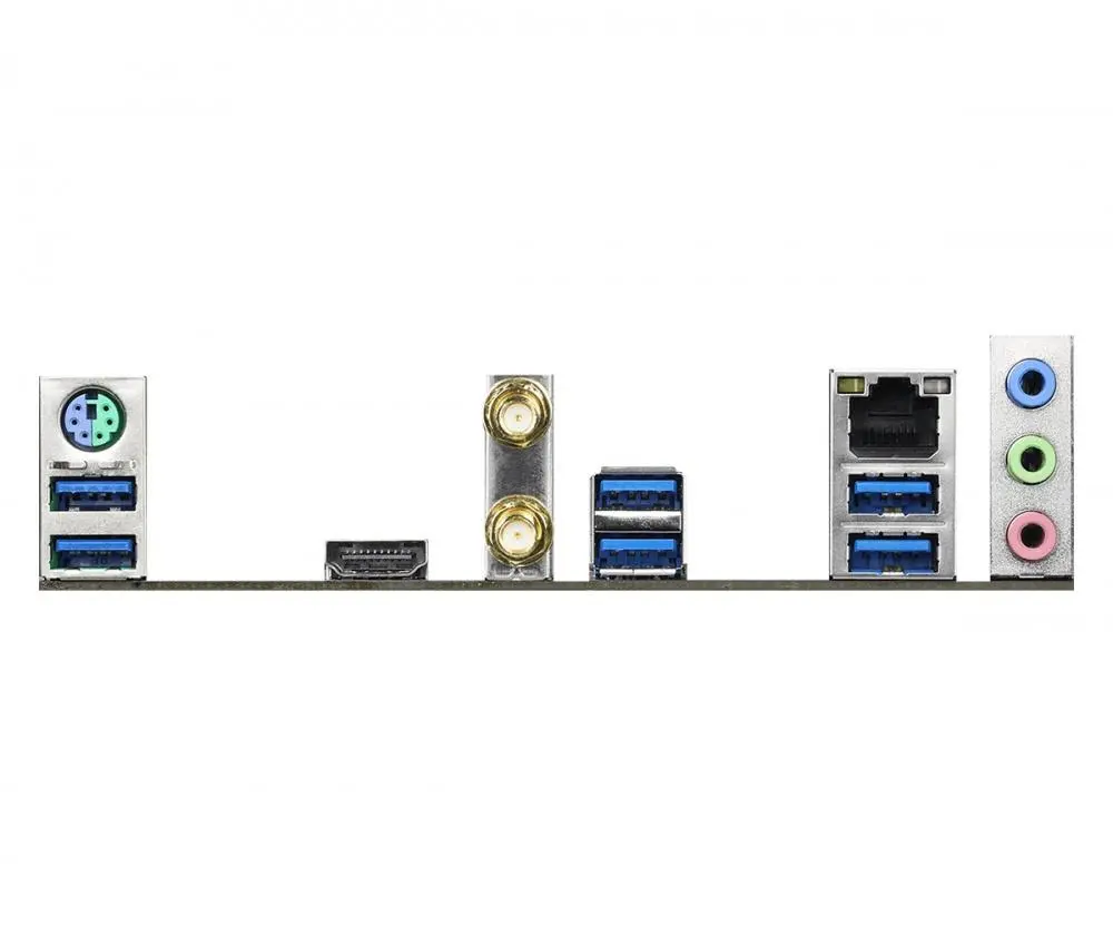 Para almacenamiento, dispone de 1 Hyper M.2 (PCIe Gen4 x4) y 4 puertos SATA III, optimizando velocidad y capacidad. Su conectividad es robusta con 8 USB 3.2 Gen1 (6 traseros, 2 frontales), Gigabit LAN, Wi-Fi 802.11ac de doble banda y Bluetooth 4.2.
