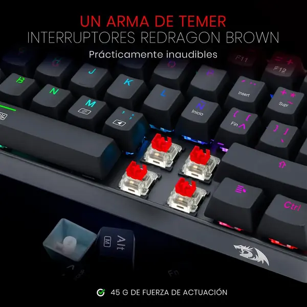 El Teclado Mecánico Redragon Dragonborn K630 Negro es una excelente opción para gamers y usuarios que buscan una experiencia de escritura y juego precisa y rápida. Con sus interruptores mecánicos Outemu Red, este teclado garantiza una respuesta rápida y suave en cada pulsación, lo que lo convierte en una herramienta ideal para juegos de ritmo rápido. Además, su retroiluminación RGB personalizable te permite ajustar la iluminación según tus preferencias y crear un ambiente visualmente atractivo en tu espacio de juego o trabajo, mejorando tu experiencia tanto estética como funcional.