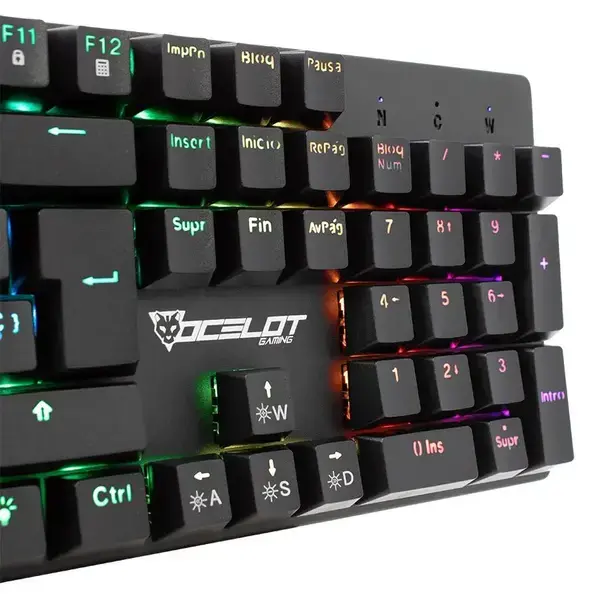 El TECLADO MECANICO OCELOT GAMING OK-TKL2 / SWITCH ROJO / FULL RGB / 88 TECLAS / ANTHIGOSTING / USB / COLOR NEGRO es un periférico diseñado para gamers y usuarios exigentes que buscan precisión y durabilidad. Con sus switches rojos, ofrece una experiencia de escritura suave y rápida, ideal para partidas intensas y sesiones prolongadas. Su diseño TKL (Tenkeyless) ahorra espacio sin sacrificar funcionalidad, mientras que el RGB completo permite personalizar la iluminación para adaptarse a cualquier configuración.